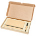 Подарочный набор в стильной картонной коробке бежевого цвета. Внутри на аккуратном ложементе располагаются блокнот в твердом переплете и ручка из бамбука.