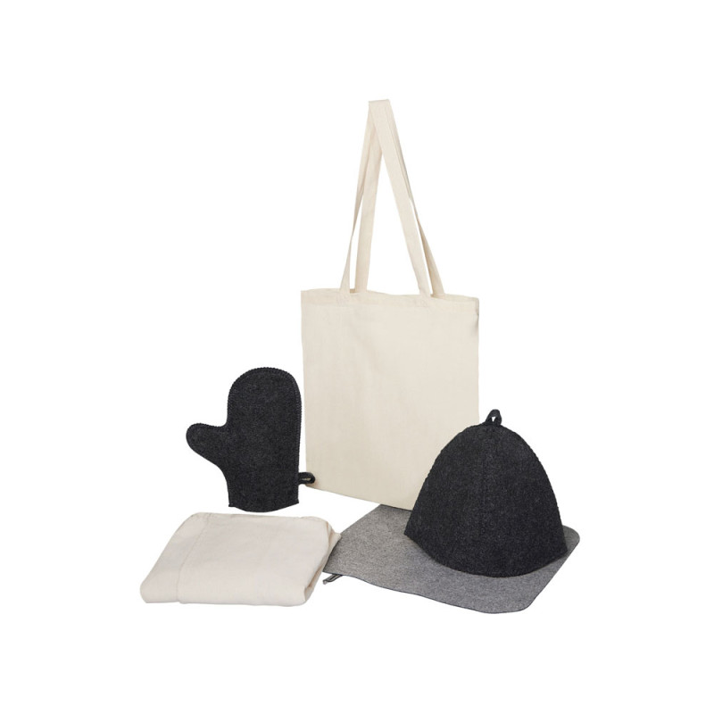Для настоящего любителя пара — холщовый килт, рукавица, шапка и коврик, упакованные в хлопковый шоппер, создадут настроение и уют в каждой бане.