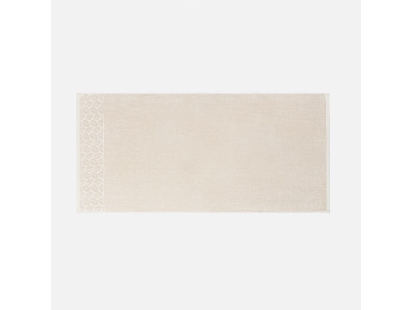 Светлые оттенки в сочетании с широким бордюром с рельефным растительным узором делают полотенце не только функциональным, но и эстетически привлекательным и элегантным.