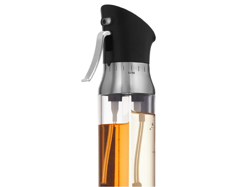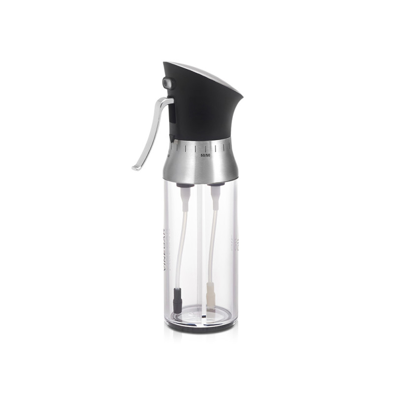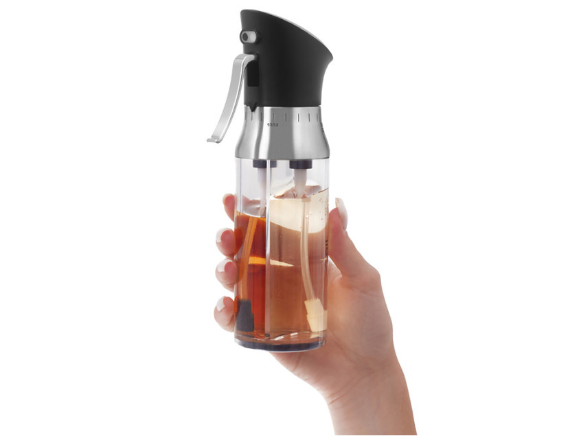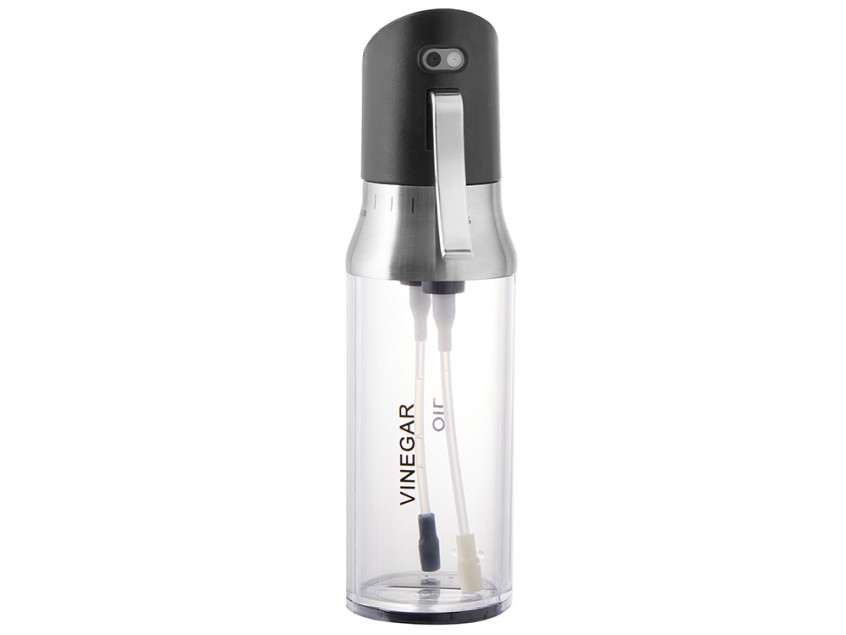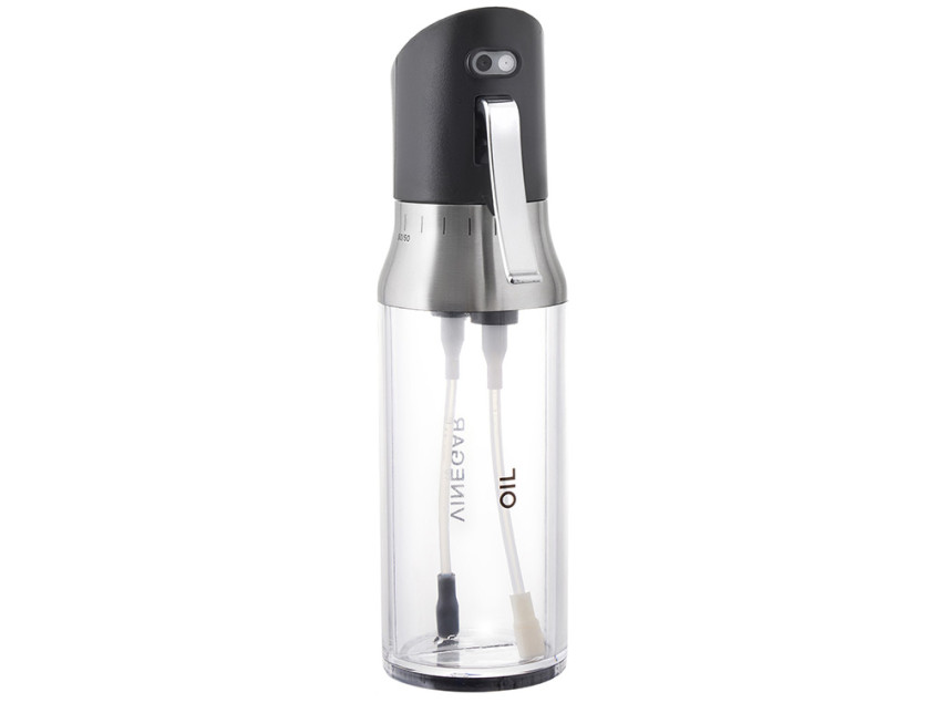 - 2 в 1: две независимые ёмкости в одном корпусе — для масла и уксуса, каждая по 95 мл
