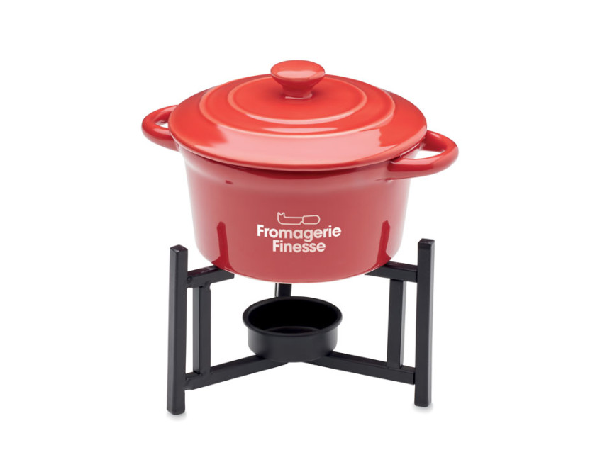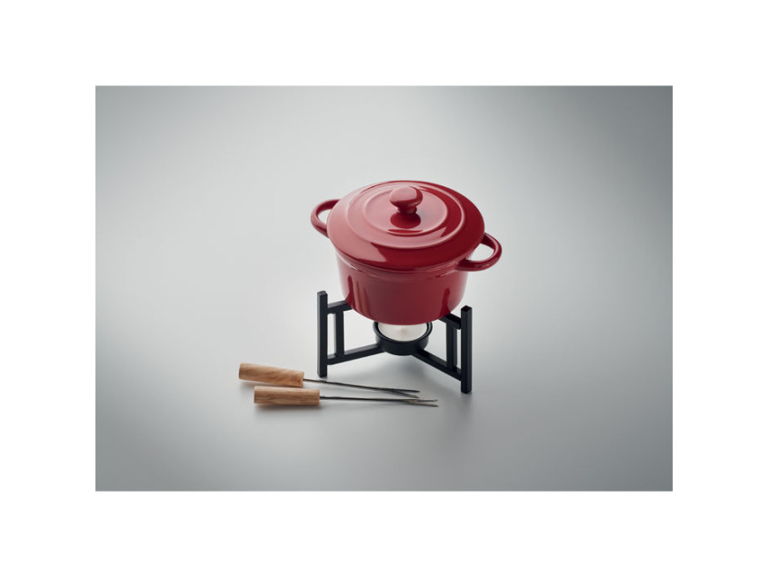 Керамический горшочек насыщенного красного цвета — это не только эстетика, но и практичность. Керамика сохраняет тепло, позволяя наслаждаться фондю дольше, а крышка защищает содержимое от остывания. В комплекте идут две металлические вилки с деревянными ручками, которые удобно лежат в руке и подчеркивают стиль набора. Объем в 300 мл идеально подходит для двоих, создавая интимную атмосферу и позволяя наслаждаться моментом без лишней суеты.
