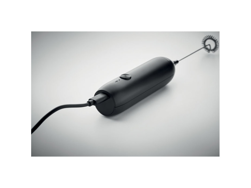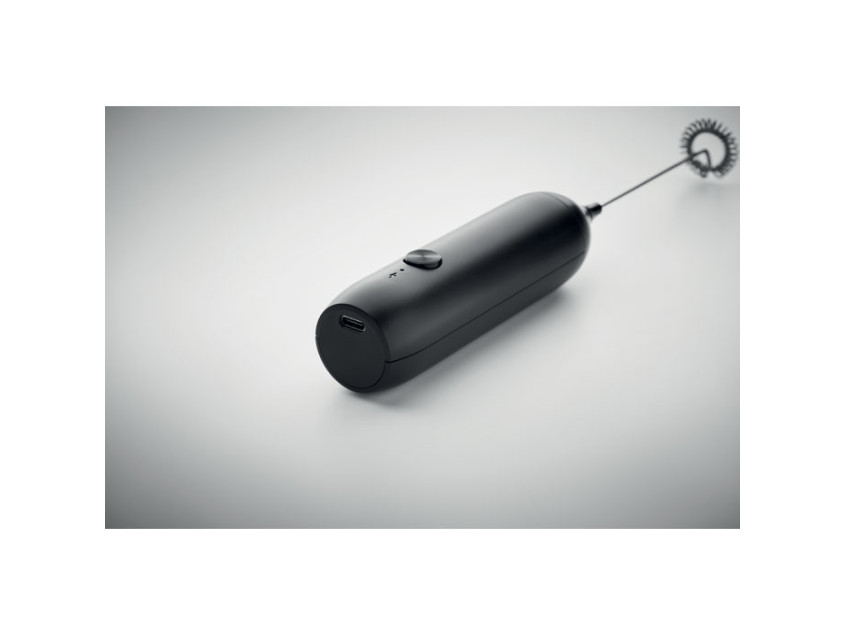 Ручной электрический вспениватель молока из пластика с матовым покрытием. Емкость встроенного аккумулятора 500 мАч. Возможность подзарядки от USB Type-C (кабель в комплекте). Скорость: 10 000 об/мин.
