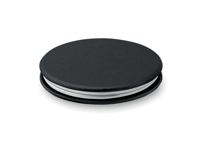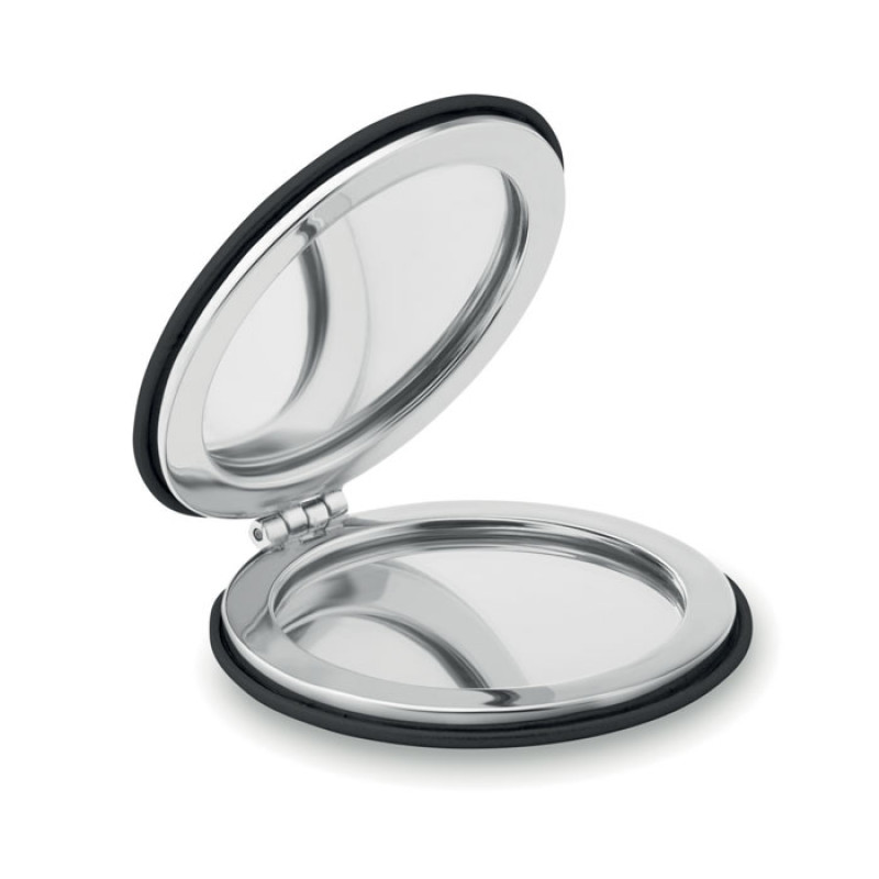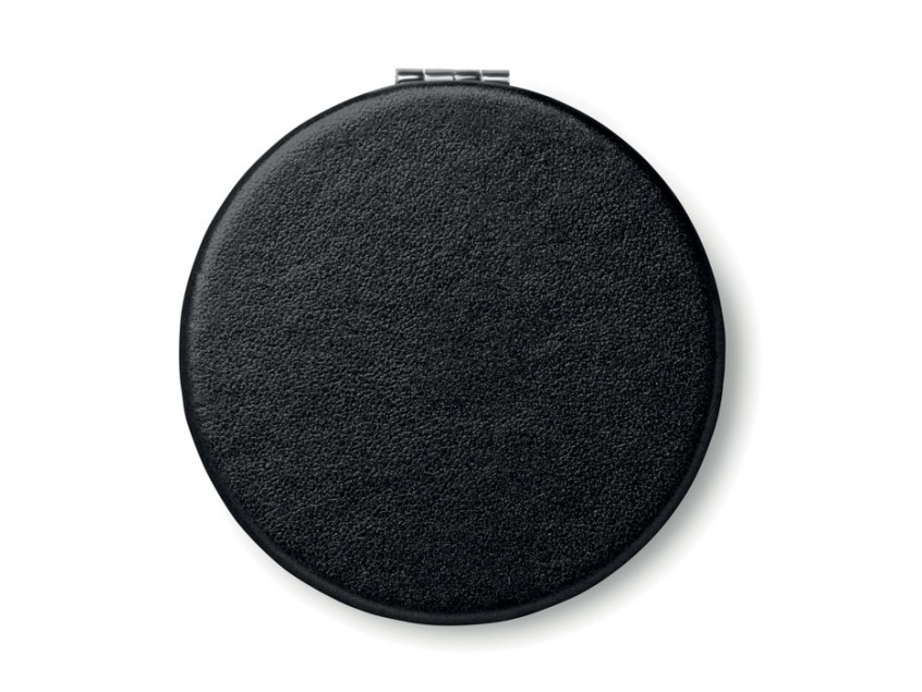 Двойное косметическое зеркальце круглой формы на магните с покрытием из полиуретана.