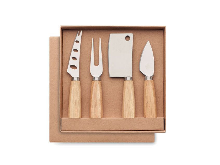 Этот набор — воплощение стиля и практичности. Три ножа и вилка из высококачественной нержавеющей стали с деревянными ручками созданы для того, чтобы подчеркнуть вашу любовь к деталям. Деревянные ручки, выполненные в натуральном оттенке, добавляют теплоту и уют, а стальные лезвия гарантируют идеальное нарезание даже самых деликатных сортов сыра.