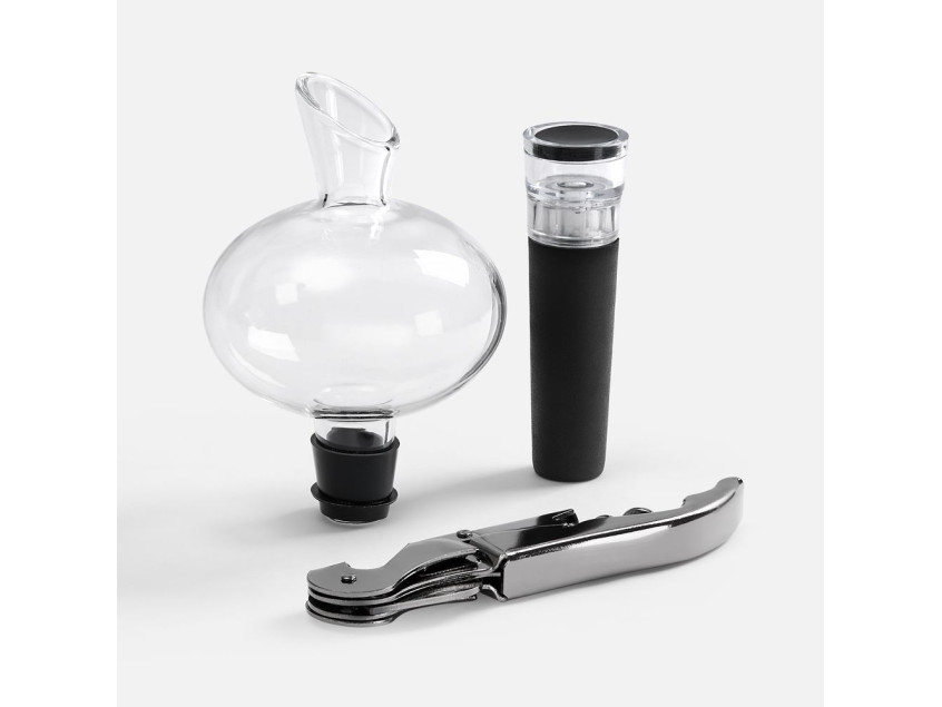 Нож сомелье легко извлекает пробку из бутылки, аэратор насыщает вино воздухом и улучшает его вкус, а винная пробка с насосным механизмом обеспечивает герметичность, продлевая свежесть напитка и сохраняя его лучшие вкусовые качества.