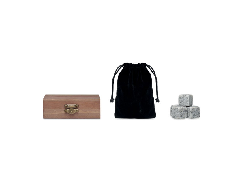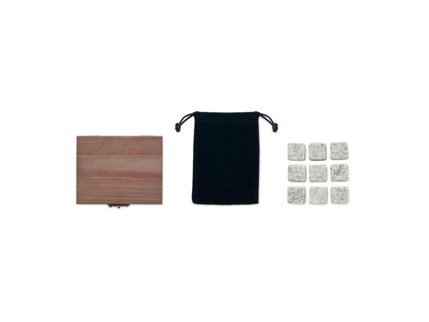 Многоразовый набор кубиков для охлаждения в коробке из сосны. Включает 9 кубиков в бархатном мешочке.