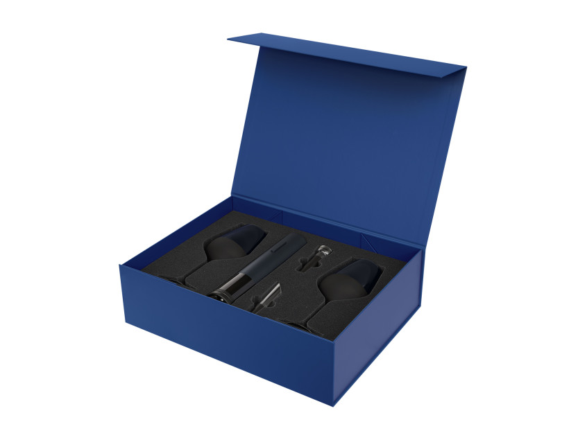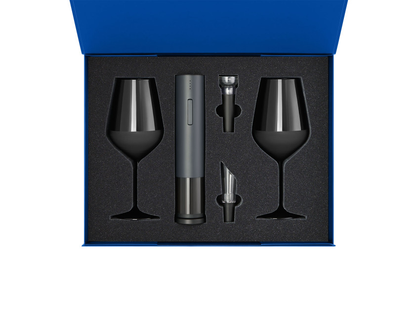 Подарочный набор 2 бокала для вина Black Edition + набор для вина Sacramento в синей коробке