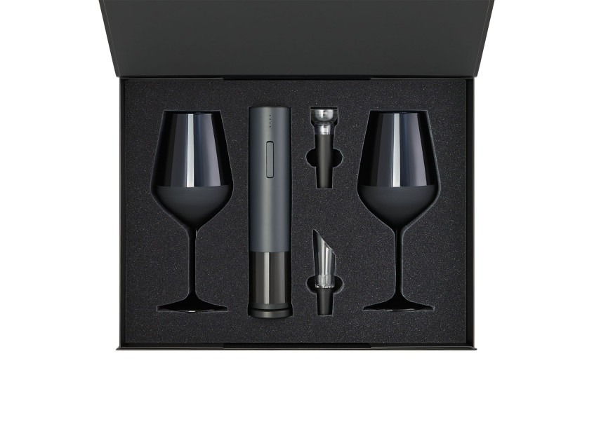 Подарочный набор 2 бокала для вина Sapphire + набор для вина Sacramento в черной коробке