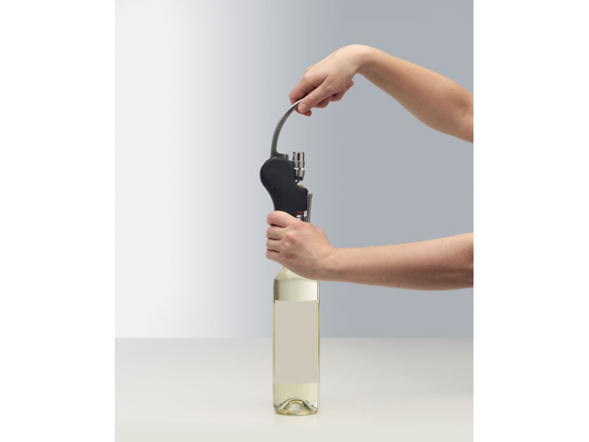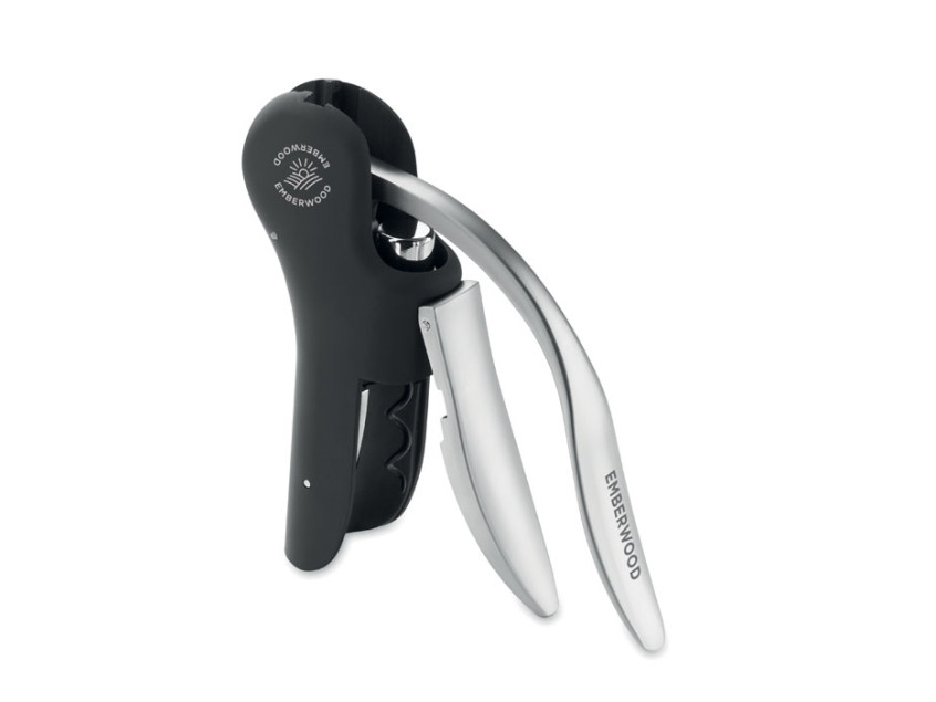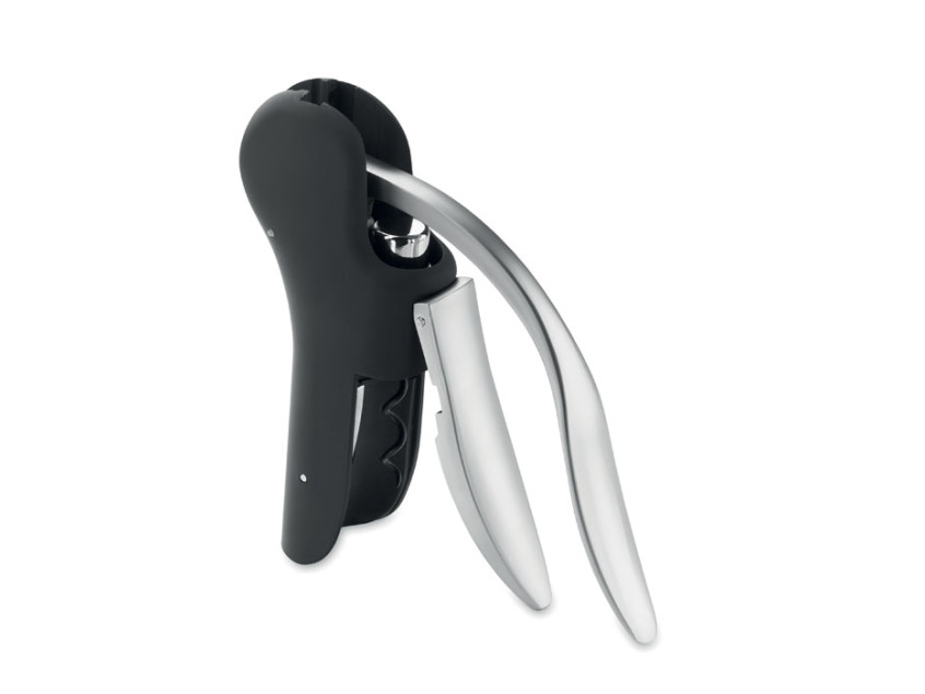 Его дизайн — это гармония минимализма и функциональности. Черный цвет с прорезиненным покрытием придает изделию современный вид, а нержавеющая сталь гарантирует долговечность и надежность. Штопор удобно лежит в руке, а автоматический рычажный механизм делает процесс открывания бутылки легким и быстрым. Больше никаких усилий — только плавное движение, и пробка оказывается у вас в руках.