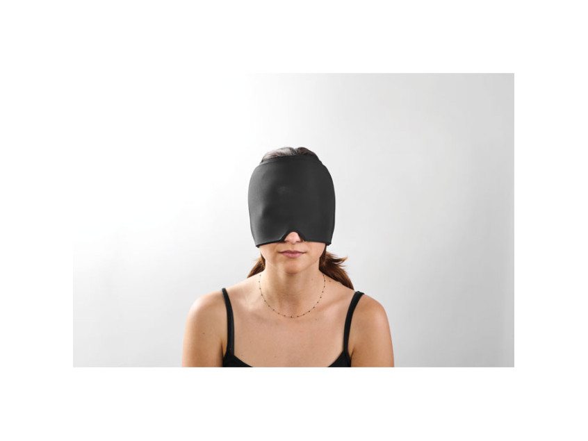 Hot and cold compress relief cap in stretchable and adjustable Lycra (for headache, pain and tension). One size fits all.