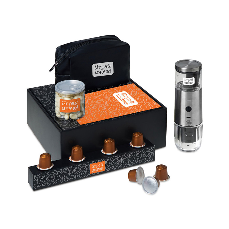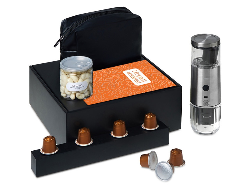 Набор Re:y. Boost о бодрости, энергии и маленьких ритуалах, которые можно взять с собой. Портативная кофемашина и кофе в капсулах позволяют приготовить ароматный напиток дома, в офисе или на прогулке. Кешью в глазури добавляет сладкую нотку, а косметичка позволяет взять любимые вещи с собой, куда бы вы ни отправились.. Этот набор превращает привычный утренний ритуал в момент бодрости и комфорта, где бы вы ни были.