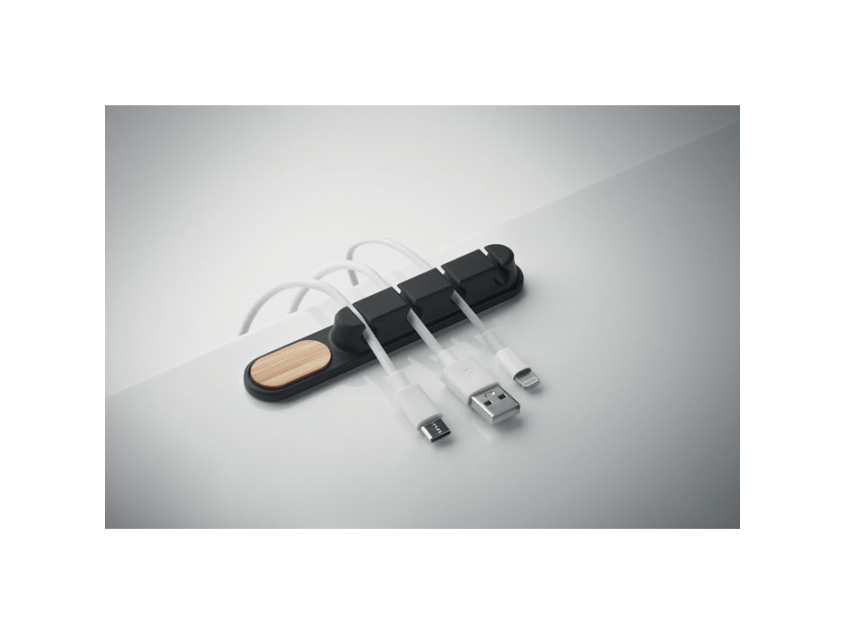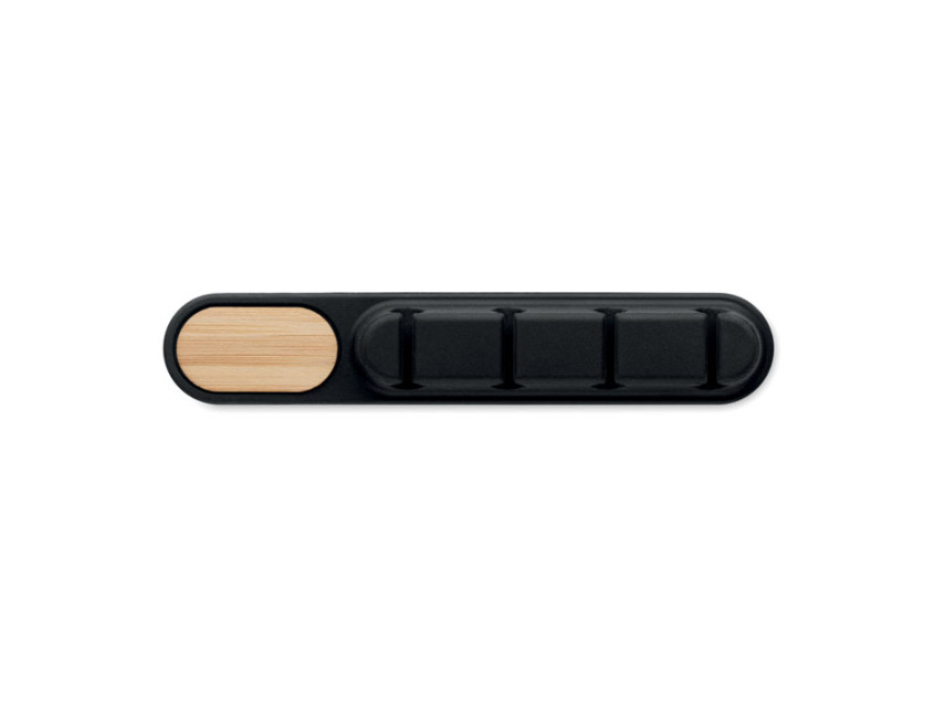 Силиконовый органайзер для кабелей с деталями из натурального бамбука. Компактный овальный дизайн обеспечивает аккуратное и надежное хранение кабелей.