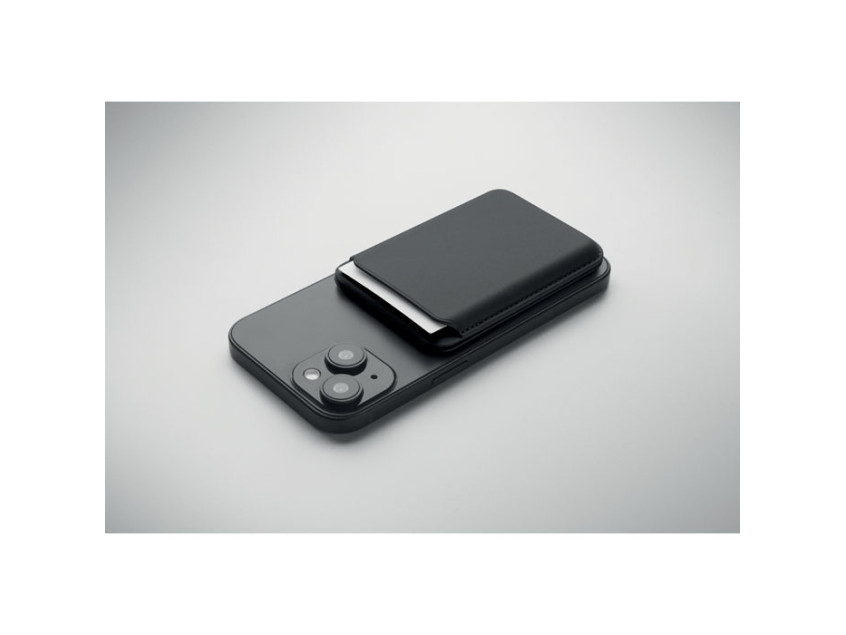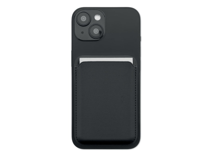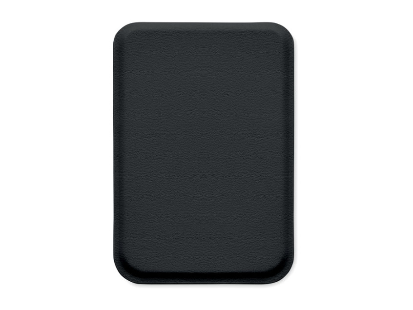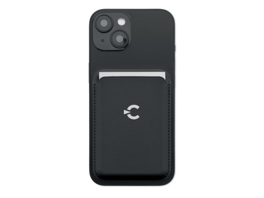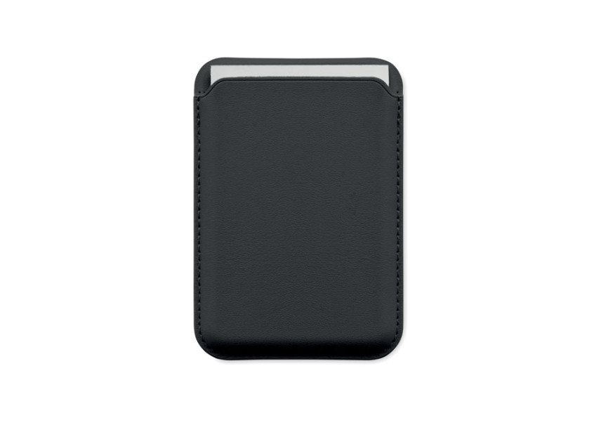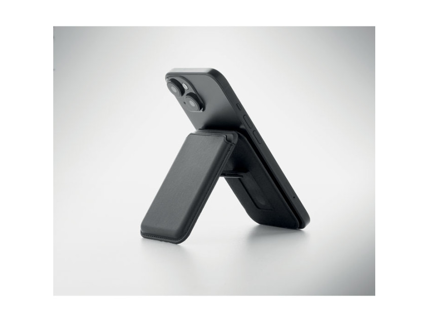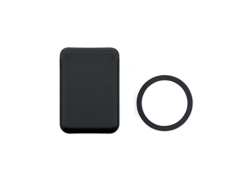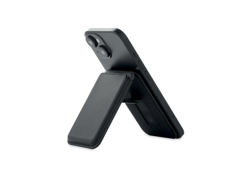 Магнитный держатель для кредитных карт из искусственной кожи (на 3 карты) с функцией подставки. В комплекте дополнительное металлическое кольцо.