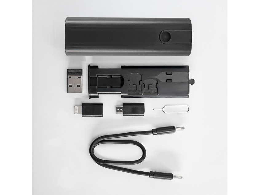 В этот комплект аксессуаров входят самые необходимые мелочи для широко ряда мобильных устройств:1. Кабель для зарядки Type-C с поддержкой быстрой зарядки PD до 60Вт;2. Переходник (адаптер) с Type-C на Lightning с поддержкой быстрой зарядки PD до 20Вт;3. Переходник (адаптер) с Type-C на Micro-USB с поддержкой быстрой зарядки PD до 18Вт;4. Переходник (адаптер) с Type-C на USB-A;5. Эджектор (скрепка) для SIM-карты. Внутри пластикового кейса также находится лоток для хранения SIM-карты и лоток для хранения карты microSD.Помимо этого, внешний кейс комплекта оборудован выдвижной подставкой для телефона.Этот аксессуар станет отличным и полезным подарком для любого человека и особенно понравится тем, кто часто ездит за границу. Компактный размер 107*30*16мм позволяет переносить комплект прямо в кармане или с легкостью разместить в сумке или рюкзаке.