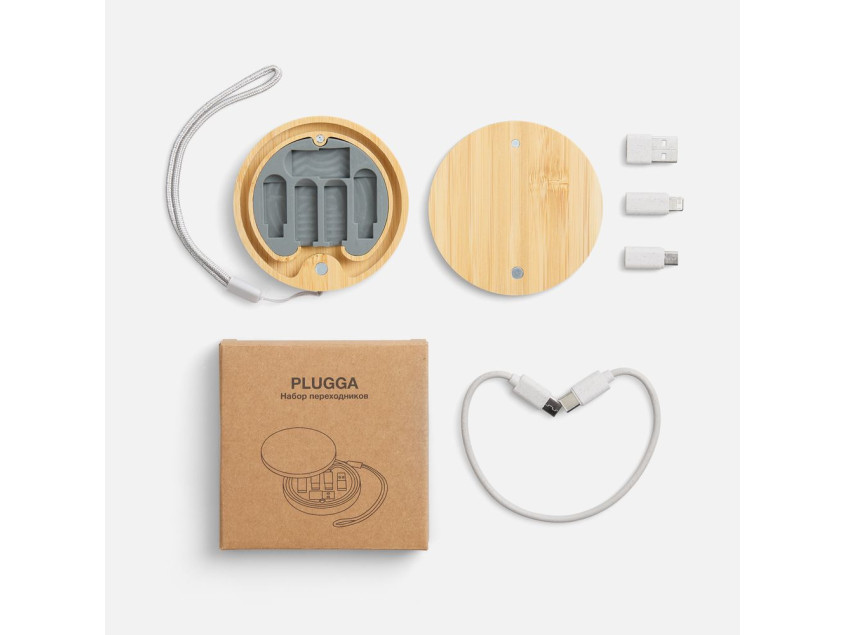 Plugga — незаменимый аксессуар для тех, кто часто путешествует, работает в офисе или просто хочет иметь под рукой все необходимое для подключения своих устройств. Укомплектован кабелем с разъемами USB Type-C-Type-C и набором переходников для различных типов разъемов: lightning, USB Type-A и micro USB.