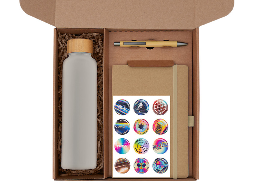 Набор Wooden станет отличным подарком для сотрудников, клиентов и партнёров, подчеркнёт внимание к их комфорту и заботу о деталях. Он уместен как корпоративный подарок на праздники, юбилеи и деловые мероприятия, так и в качестве welcome-набора для новых коллег. Набор объединяет всё необходимое для комфортного рабочего дня:  Блокнот для идей, заметок и планов на день; Ручка, которая всегда под рукой; Стеклянная бутылка для воды объемом 600 мл., чтобы поддерживать водный баланс в течение дня; Бамбуковая подставка для телефона, чтобы держать гаджет в поле зрения во время работы или видеозвонков;  Набор стикеров — для ярких акцентов и персонализации вещей Универсальный ложемент обеспечивает аккуратное размещение и надёжную фиксацию элементов, делая набор эффектным и презентабельным при вручении. Дополнительное преимущество — набор доступен в конструкторе наборов: компоненты можно заменить и собрать индивидуальный вариант под стиль компании или вкусы получателя.