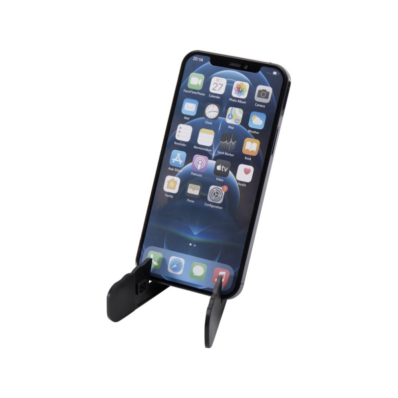 Складная подставка для планшета и телефона Buna изготовлена из переработанного пластика для более ответственного выбора. Благодаря тонкому дизайну она легко помещается в любой карман, что делает ее идеальным для путешествий.