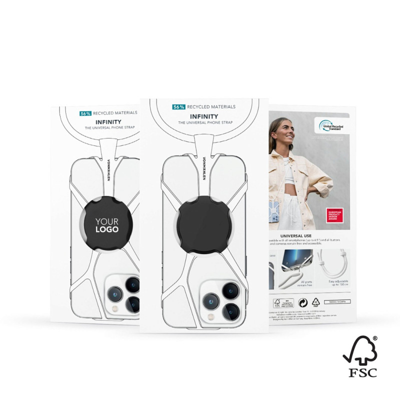 Универсальный ремешок-держатель VONMAHLEN Infinity совместим со всеми популярными моделями смартфонов. Его можно прикрепить всего за несколько секунд даже поверх чехла. Infinity сочетает элегантность и функциональность: интеллектуальный дизайн и полностью регулируемый нейлоновый шнур делают его по-настоящему идеальным аксессуаром. Гибкий силикон гарантирует, что ваш телефон всегда надежно закреплен. Ремешок-держатель не ограничивает использование кнопок или функций на телефоне.