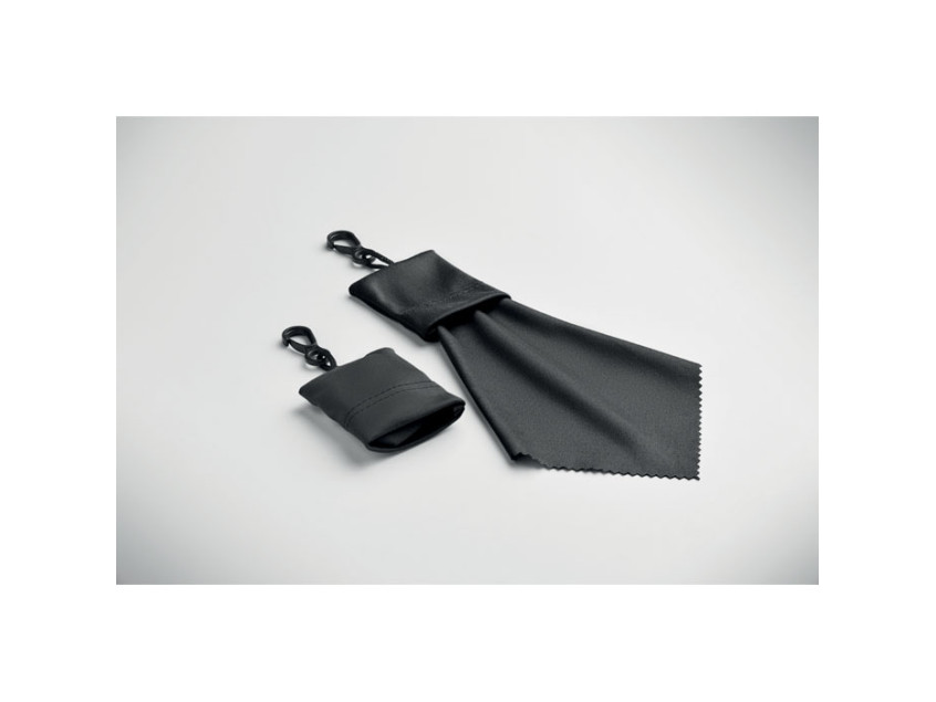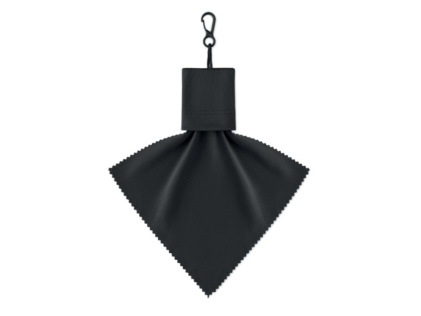 Чистящая салфетка из RPET с чехлом из того же материала и крючком для подвешивания из полипропилена.