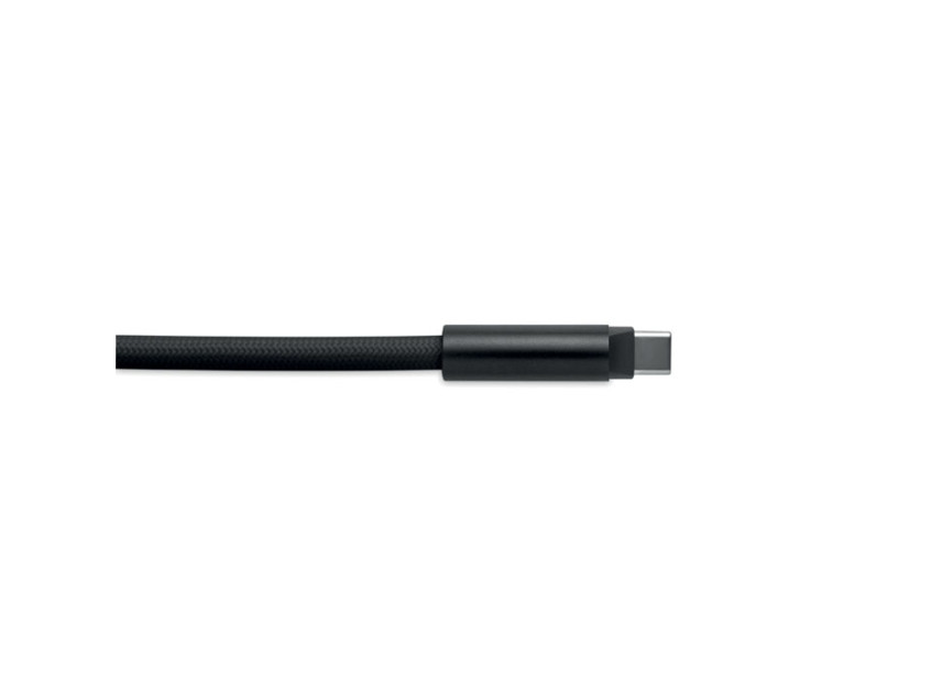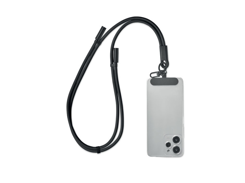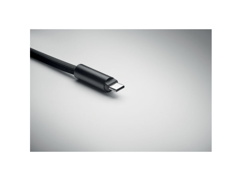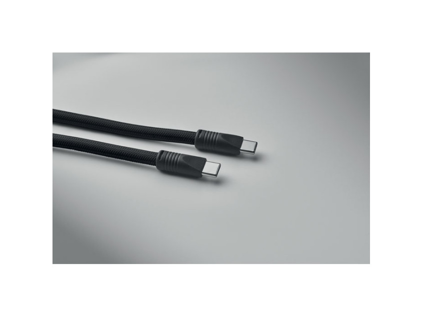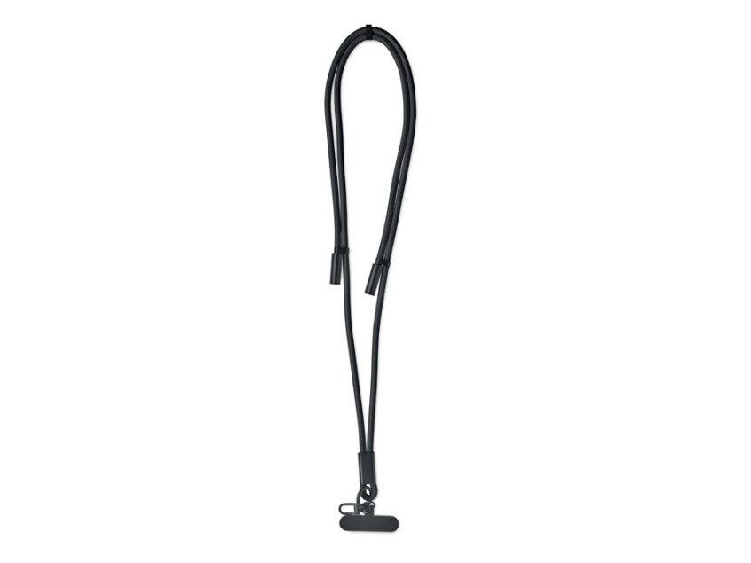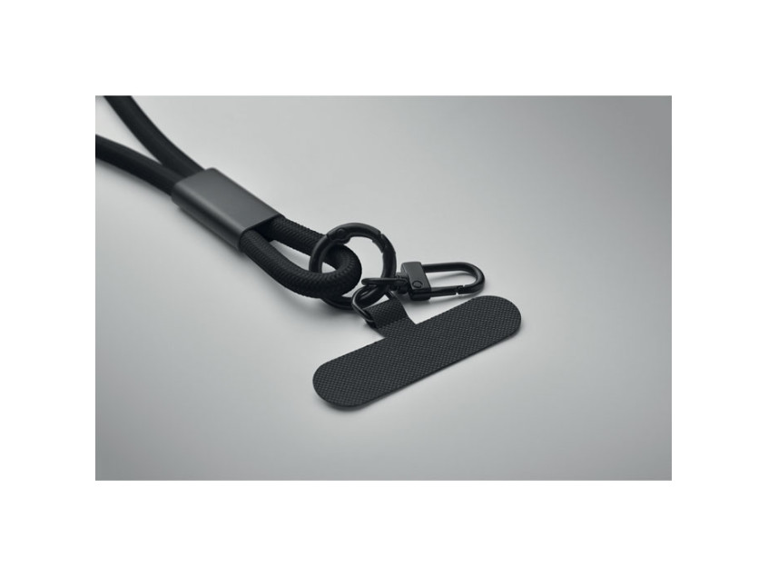 Cord lanyard with 60W charging and data transfer cable type-C to type-C in RPET with phone cord holder and key clip.