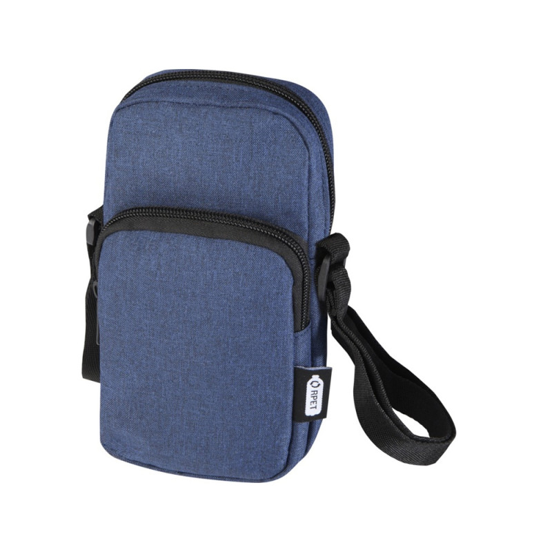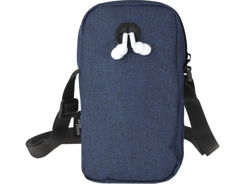 Сумочка для телефона Ross, изготовлена из переработанных материалов, сертифицированных согласно, GRS сохранит ваш телефон в безопасности и всегда заряженным с помощью входящего в комплект портативного зарядного устройства в отделении на молнии. Спереди расположен. карман на молнии для других мелких аксессуаров.Ремень 140 см регулируется по длине, что делает сумочку удобным аксессуаром для гаджетов во время поездок или передвижений по городу. GRS certified recycled polyester.