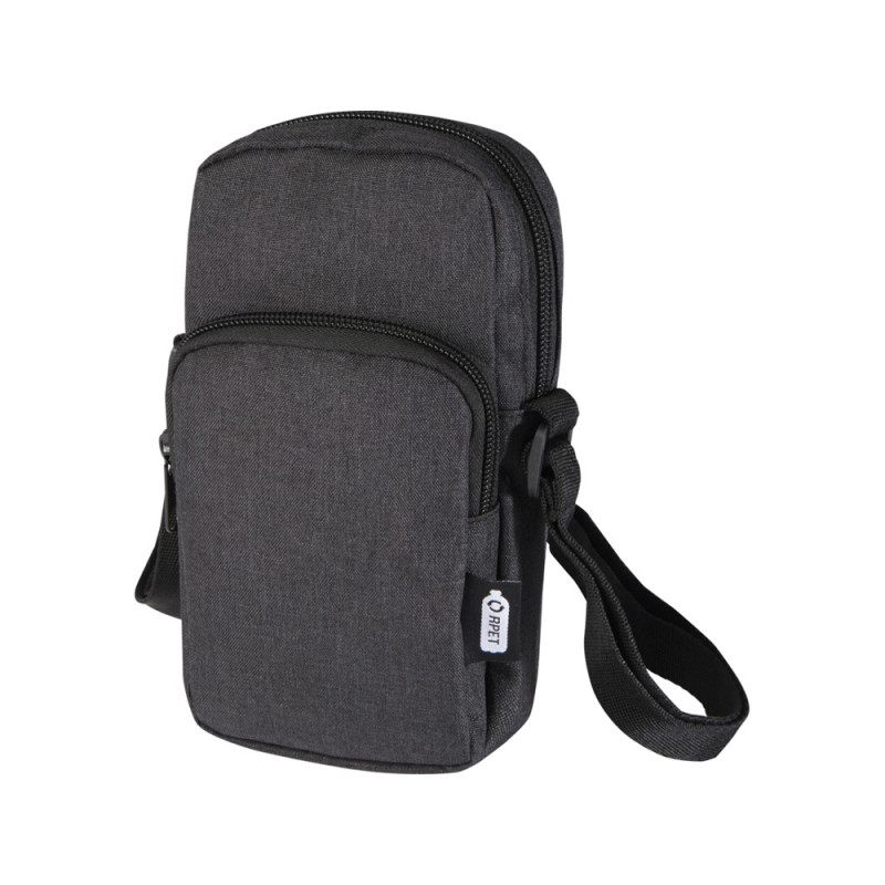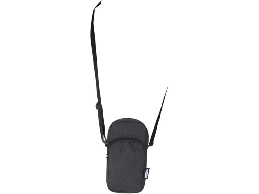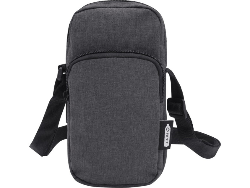 Сумочка для телефона Ross, изготовлена из переработанных материалов, сертифицированных согласно, GRS сохранит ваш телефон в безопасности и всегда заряженным с помощью входящего в комплект портативного зарядного устройства в отделении на молнии. Спереди расположен. карман на молнии для других мелких аксессуаров.Ремень 140 см регулируется по длине, что делает сумочку удобным аксессуаром для гаджетов во время поездок или передвижений по городу. GRS certified recycled polyester.