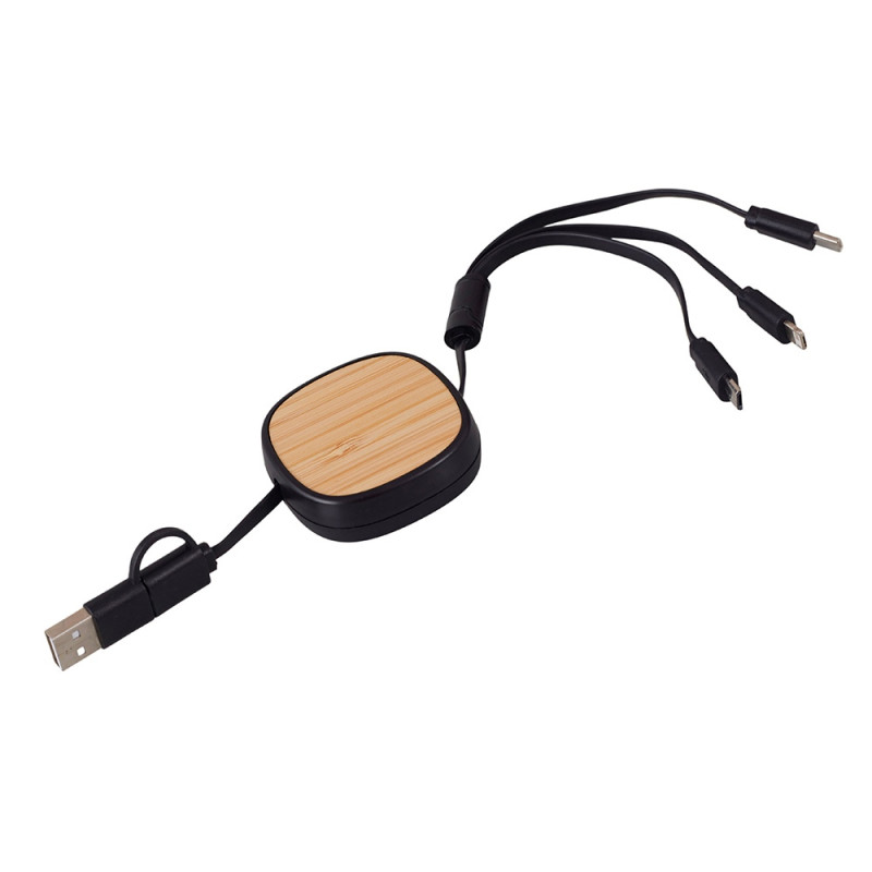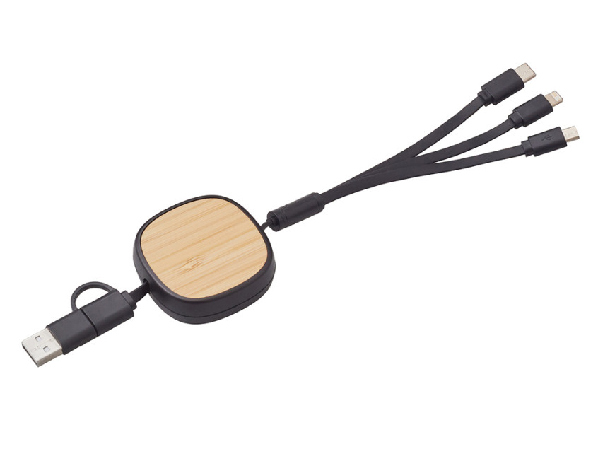 Универсальный кабель с ретрактором 3-в-1 Retrax — это стильное и практичное решение для зарядки и передачи данных на ходу. Компактный корпус из экологичного бамбукового покрытия сочетается с удобной системой автоматического складывания, что делает его идеальным спутником в путешествиях, на работе и в повседневной жизни. Кабель оснащён тремя разъёмами: USB-A, Micro-USB и Lightning, обеспечивая совместимость с широким спектром устройств — от смартфонов до планшетов и других гаджетов. Благодаря прочной конструкции и элегантному дизайну, Retrax станет незаменимым аксессуаром для тех, кто ценит функциональность и стиль. Поставляется в фирменной коробке bamboo collection.