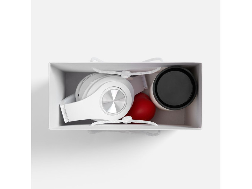 | Материал: | наушники - пластик; термостакан - нержавеющая сталь, матовое покрытие; крышка - пластик, силикон; коробка - переплетный картон, бумага Magic; антистресс - вспененный полиуретан |