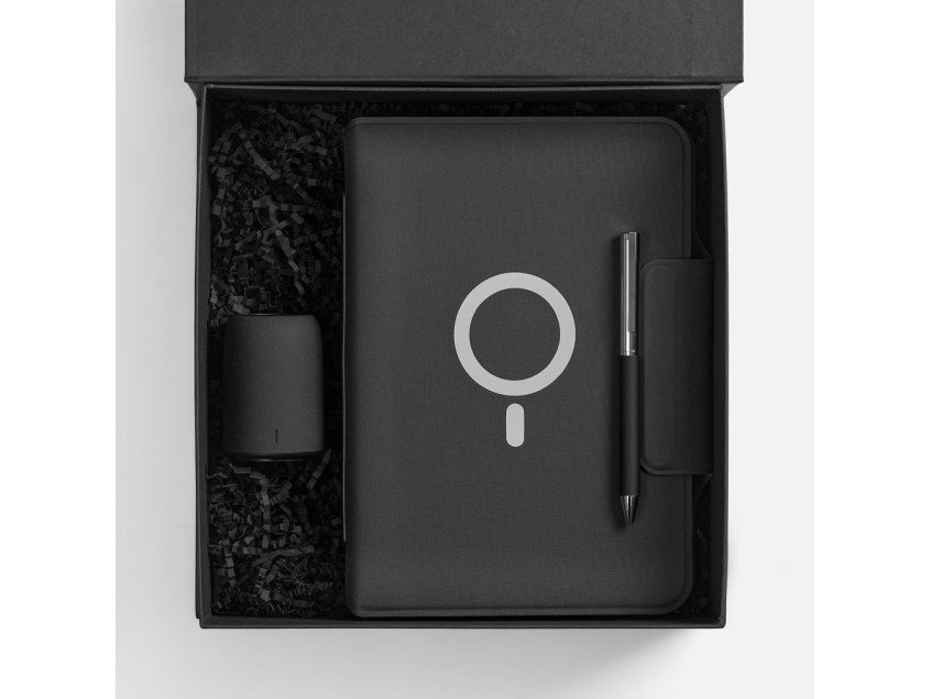 Центральное место в наборе, конечно, занимает органайзер Oiro с блокнотом, подставкой для смартфона и встроенным аккумулятором для беспроводной зарядки — практичное смарт-решение в организации рабочего процесса, где каждая деталь продумана для максимального комфорта, а использование органайзера приносит подлинное удовольствие.