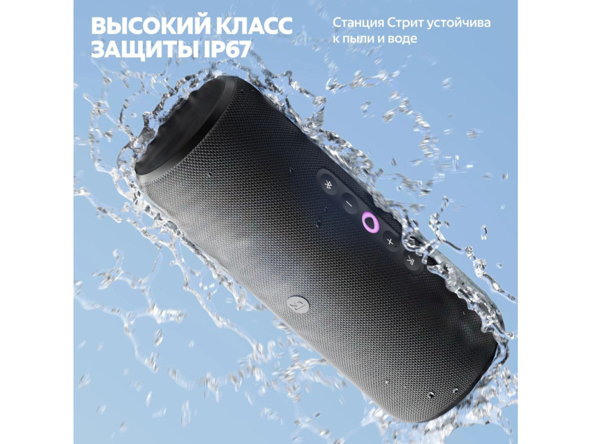 «Яндекс Станция. Стрит» — портативная умная с мощным звучанием, «Алисой» и емким аккумулятором. Берите ее с собой, куда бы вы ни отправились, и управляйте любимой музыкой голосом по Wi-Fi и Bluetooth.