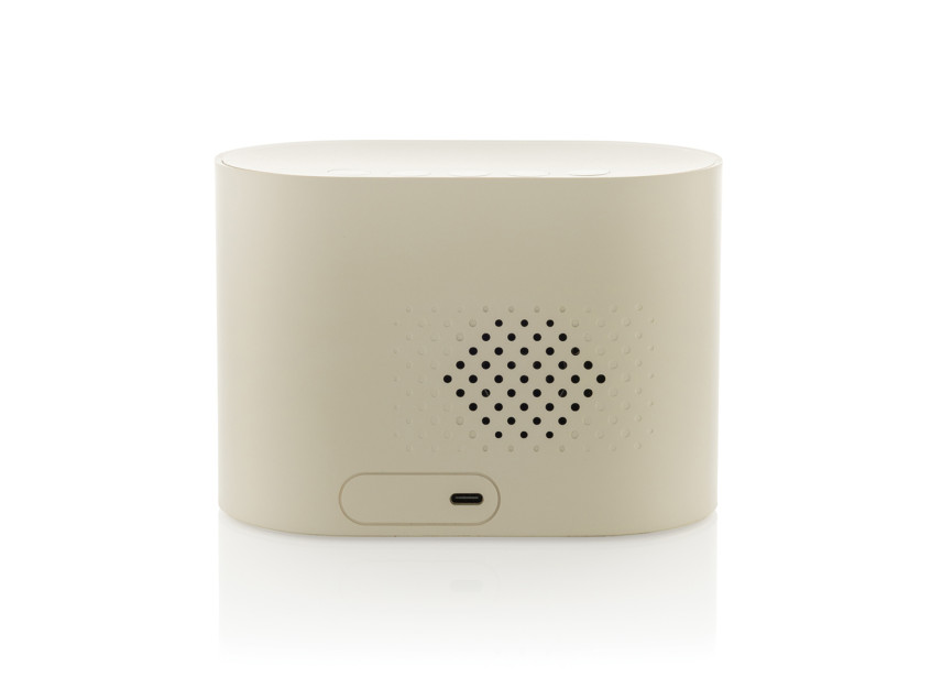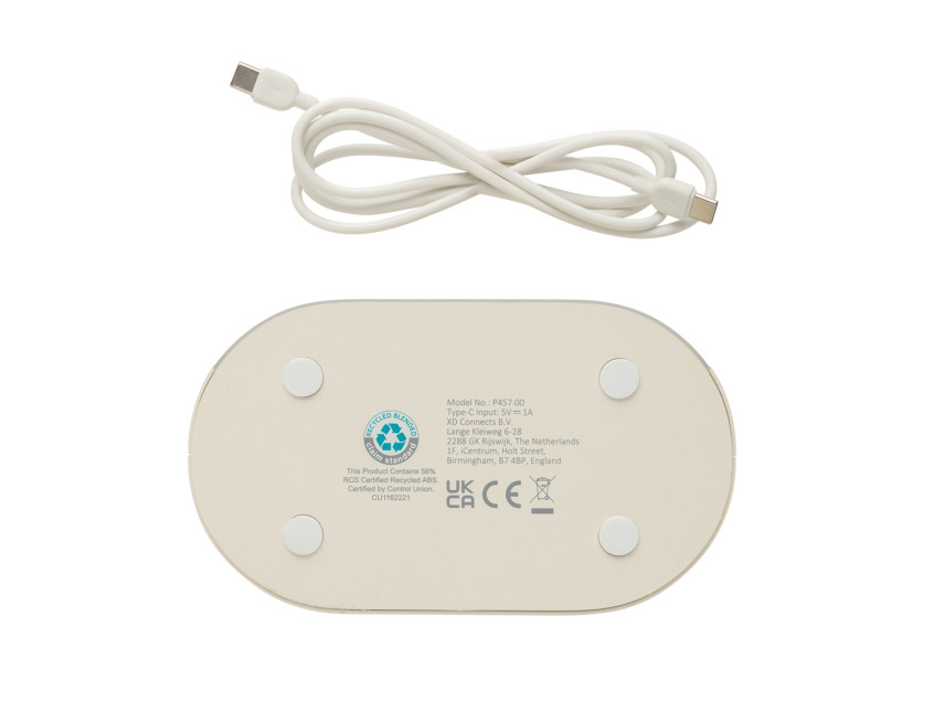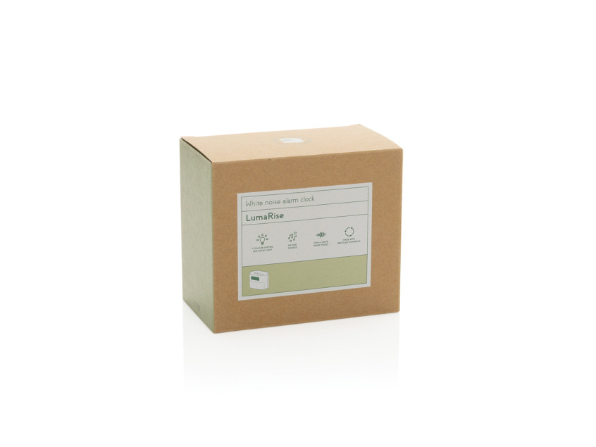 Изделие изготовлено из переработанных материалов, сертифицированных по стандарту RCS (Recycled Claim Standard), который подтверждает содержание переработанного сырья на всех этапах производственной цепочки. Будильник на 58% состоит из переработанного пластика. Изделие и аксессуары не содержат ПВХ и упакованы в экологичную коробку FSC®. В комплект входит кабель USB A/USB C длиной 120 см из переработанного TPE.