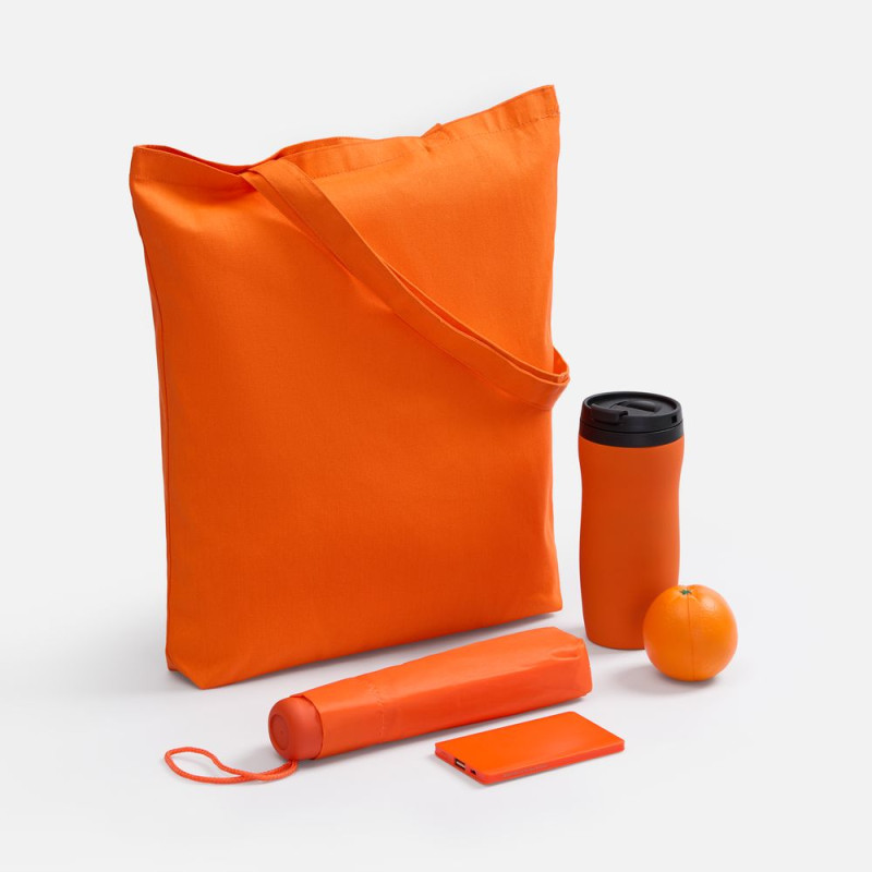 | Материал: | зонт - полиэстер 190T, ручка - пластик; покрытие софт-тач; каркас, спицы - металл; аккумулятор - пластик; крышка термостакана, внутренняя колба - пластик, корпус - нержавеющая сталь; покрытие софт-тач; сумка - хлопок 100%, плотность 210 г/м²; антистресс - вспененный полиуретан |