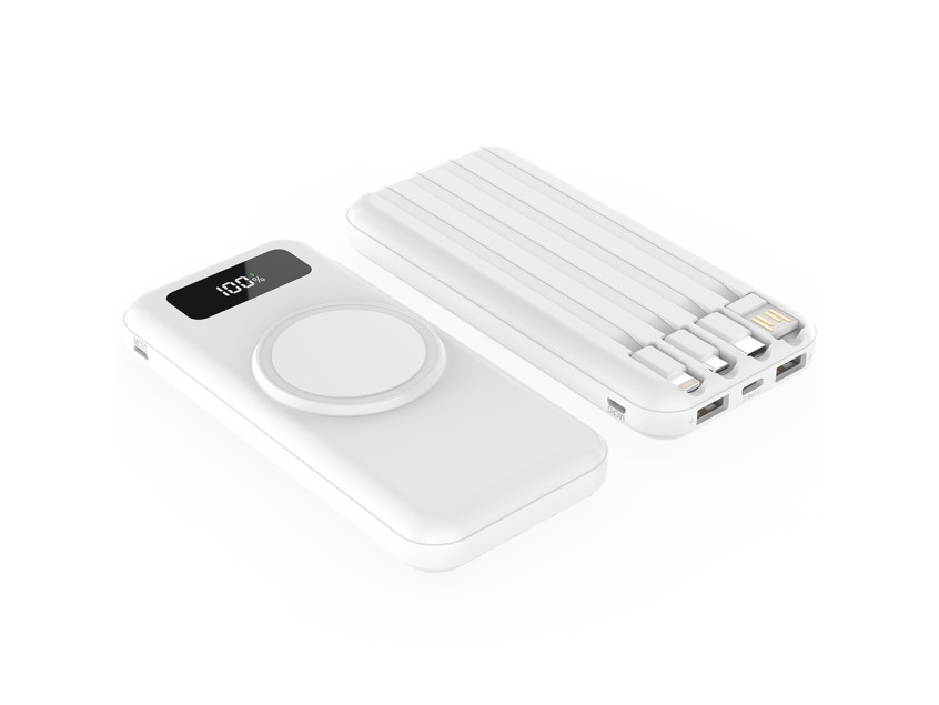 - Выходы: 2 Порта USB-A (5V/2A)/ Кабели: Micro-USB,lightning, type-c (5V/2A)/ Беспр.зарядка 5W