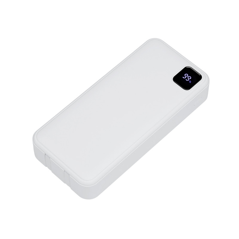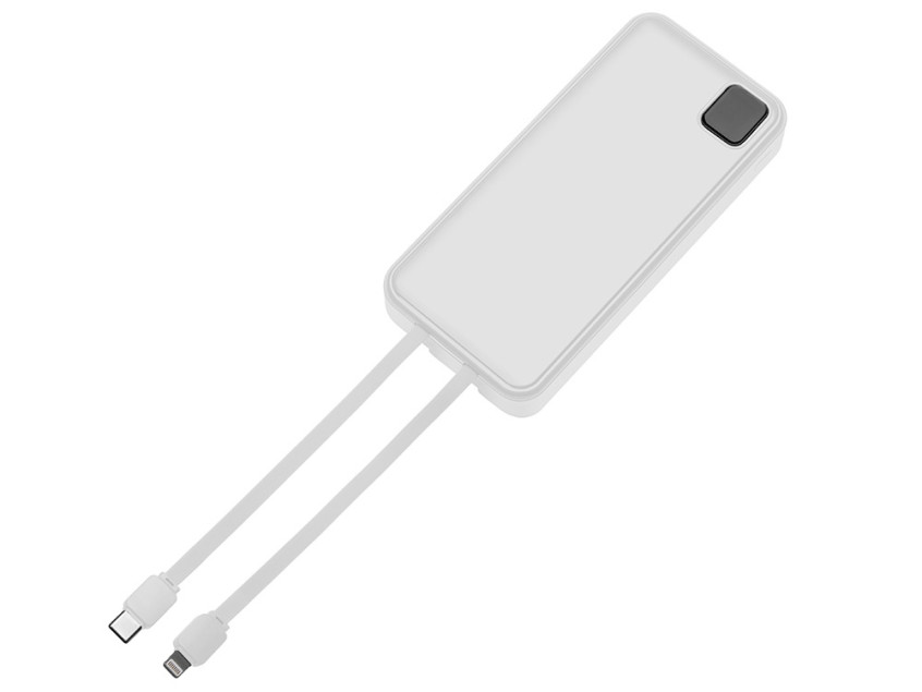 Удобный внешний аккумулятор с функцией быстрой зарядки и встроенными кабелями USB-C (симметричный разъём USB тип С) и Lightning (разъём в ранних версиях iPhone) — ваш надежный партнер в путешествиях, на встречах и в повседневных задачах. Цифровой дисплей в реальном времени показывает точный остаток заряда и статус быстрой зарядки, а встроенные кабели и несколько разъемов позволяют заряжать до 4 устройств. Прочный корпус из переработанного АБС-пластика и емкость 20000 мАч обеспечивают зарядом все ваши устройства на долгий срок. Идеальный выбор для тех, кто ценит комфорт и функциональность в одном устройстве. Продуманная упаковка: для открытия просто потяните за язычок, и появится гаджет с нанесением.