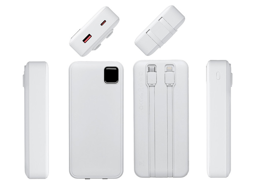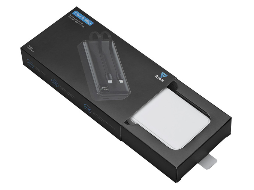Внешний аккумулятор со встроенными кабелями Фрэйм Про, быстрая зарядка, 20000мач