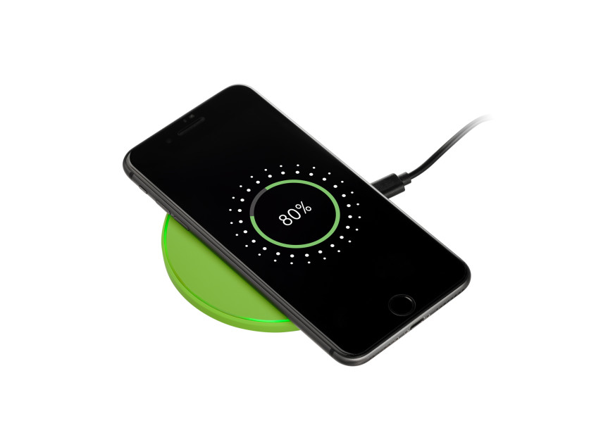 Беспроводное зарядное устройство с подсветкой 15W Аурис (Auris), салатовое