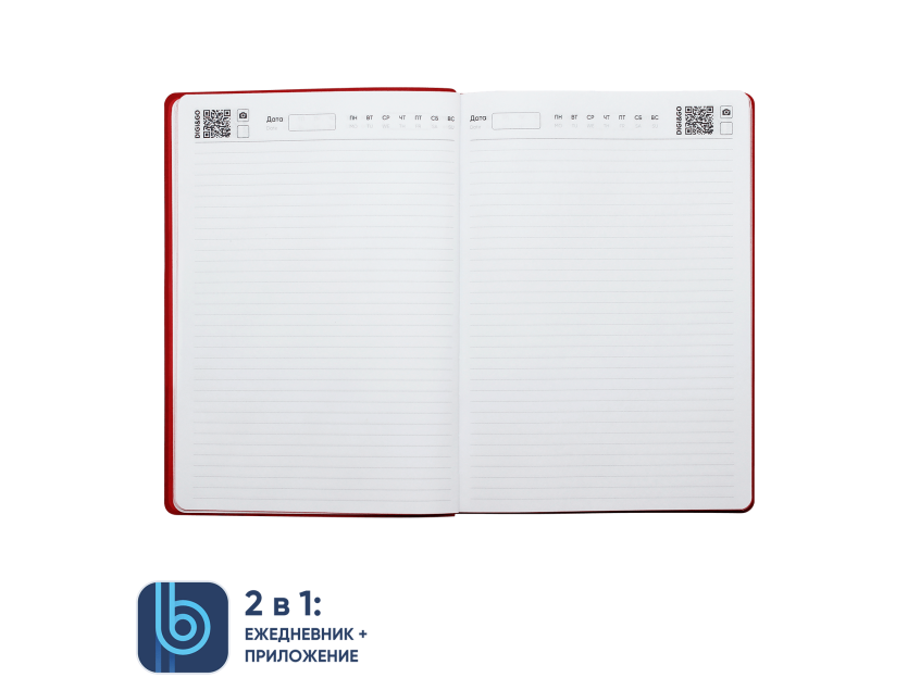 Ежедневник Bplanner 04 — изготовлен из качественной экокожи по своей структуре напоминающей софт-тач. Материал отличается более высокими эксплуатационными характеристиками и менее прихотлив при активном использовании (ношение в сумке, рюкзаке). У ежедневника предусмотрена опция хранения ручки на корешке, цветной форзац и нахзац. Обрез выкрашен в цвет обложки. На форзаце ежедневника расположен qr-код, который активирует годовой доступ к мобильному приложению. А приложение способно теперь еще и распознать и оцифровать текстовые заметки.