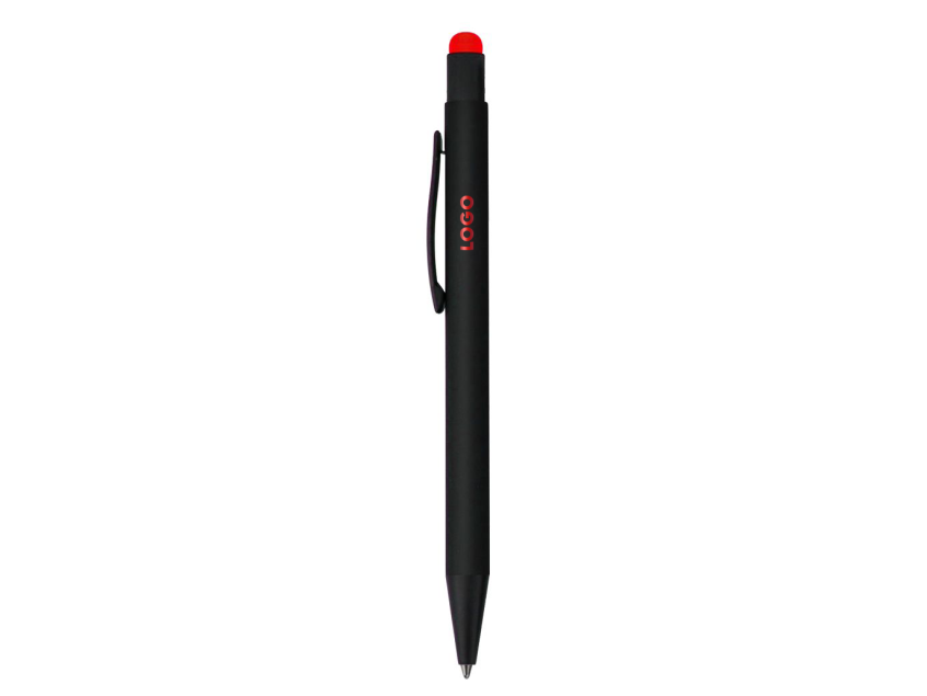 Металлическая шариковая ручка Raven черного цвета с поверхностью soft-touch. Особенностью этой ручки является зеркальная гравировка, которая вскрывается в цвет стилуса.