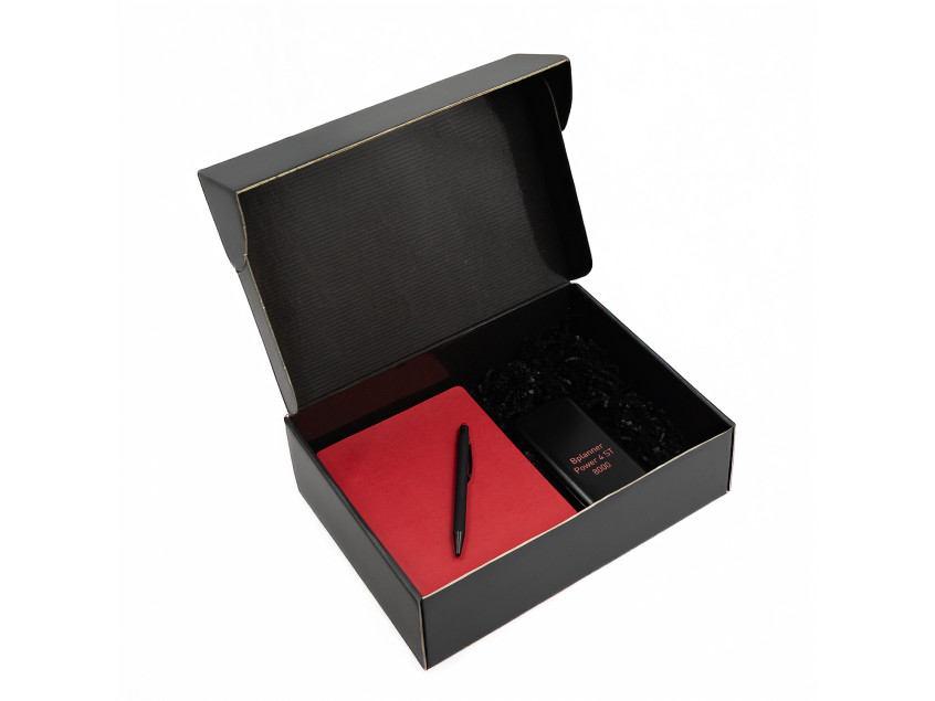 Коробка Hot Box с матовой ламинацией и бумажной стружкой - прекрасное решение для упаковки наборов: много вариантов для комбинации предметов.