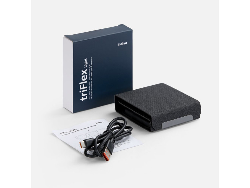 triFlex Light — компактное устройство беспроводной зарядки для самых мобильных и современных пользователей. Станцию легко свернуть в аккуратный бокс, поэтому ее удобно использовать не только в офисе, но и находясь в дороге.