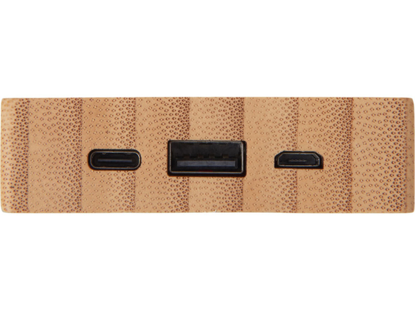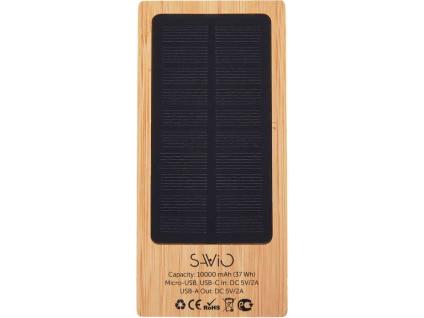 Внешний аккумулятор ёмкостью 10 000 мАч, созданный для тех, кто ценит стиль, функциональность и заботу о природе. Корпус устройства изготовлен из натурального бамбука и переработанного ABS-пластика — это не только придаёт ему уникальный эстетичный вид, но и снижает экологический след. С одной стороны — солнечная панель, позволяющая подзаряжать устройство от солнца, с другой — панель с возможностью нанесения светящегося логотипа компании или бренда. Идеальное решение для путешественников, офисных сотрудников и корпоративных подарков — технологично, стильно и ответственно.