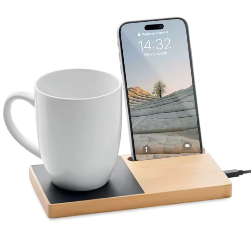 Удобное и функциональное зарядное устройство Allow с функцией подогрева в элегантном светло-коричневом исполнении станет идеальным аксессуаром для вашего рабочего стола или дома.