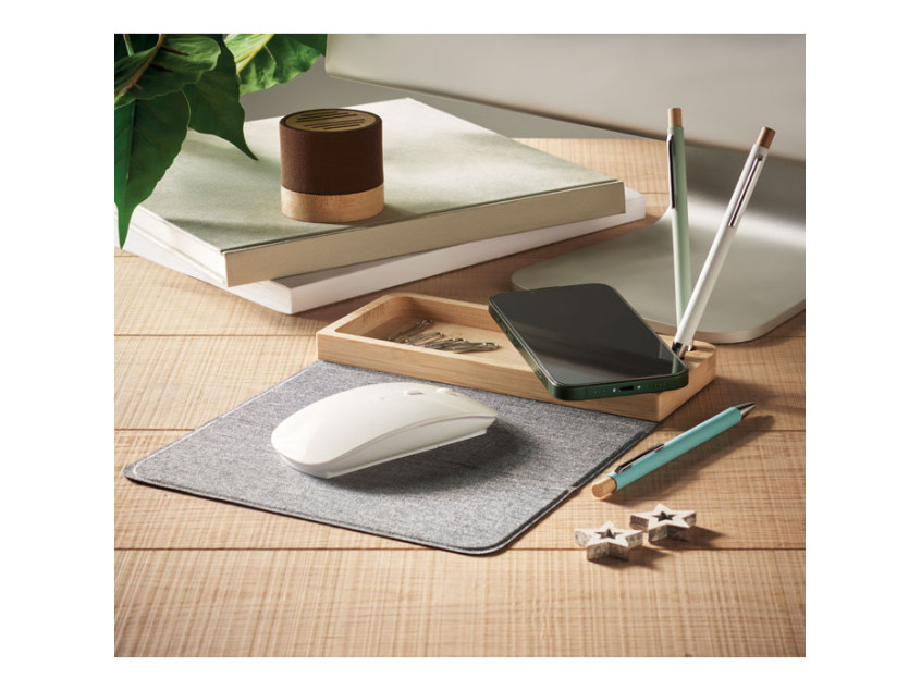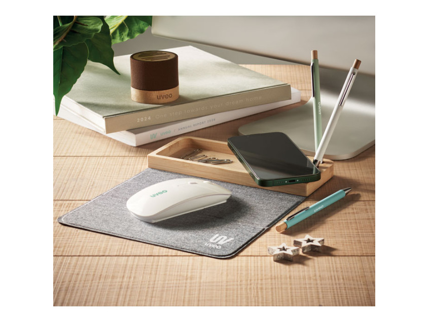 Помимо зарядки, KM2281-40 предлагает дополнительные функции, которые сделают ваш рабочий процесс еще более организованным. В комплекте вы найдете три держателя для ручек, подставку для телефона и складной коврик для мыши из переработанного материала RPET. Это не только удобно, но и экологично, ведь каждый элемент устройства создан с заботой о природе.