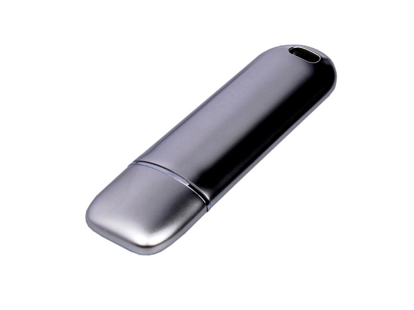 Классическая металлическая флешка с колпачком и сканером отпечатков пальцев.