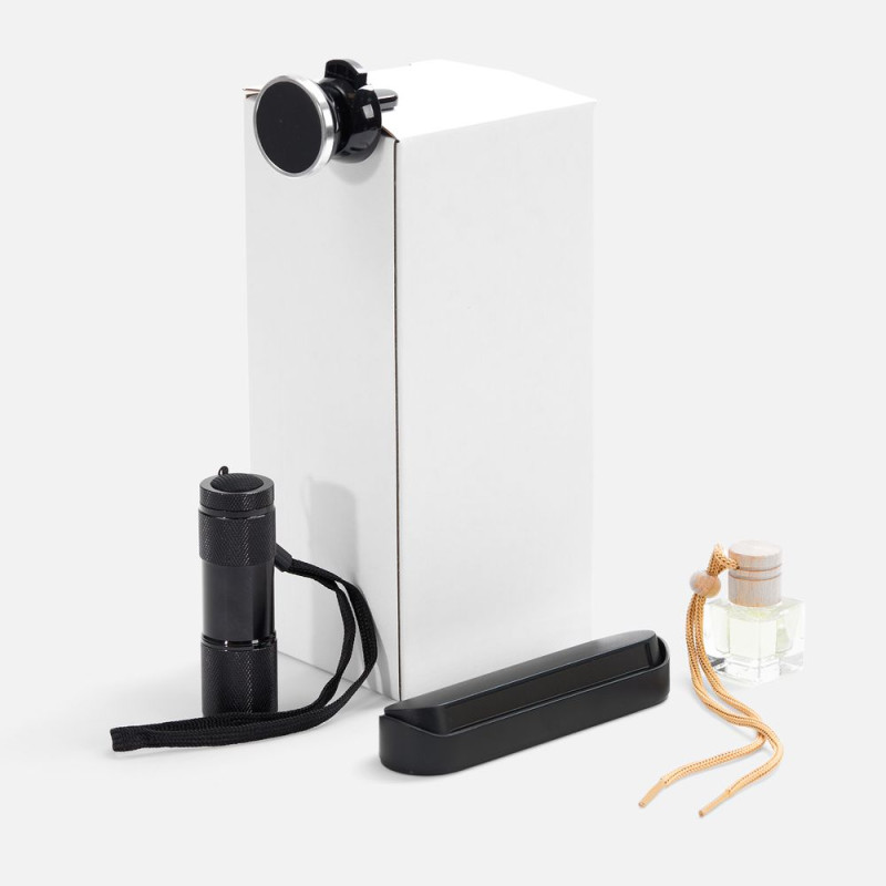 Материал: | держатель - АБС-пластик; визитка - пластик; фонарик - алюминий; ароматизатор - стекло, дерево; коробка - микрогофрокартон |