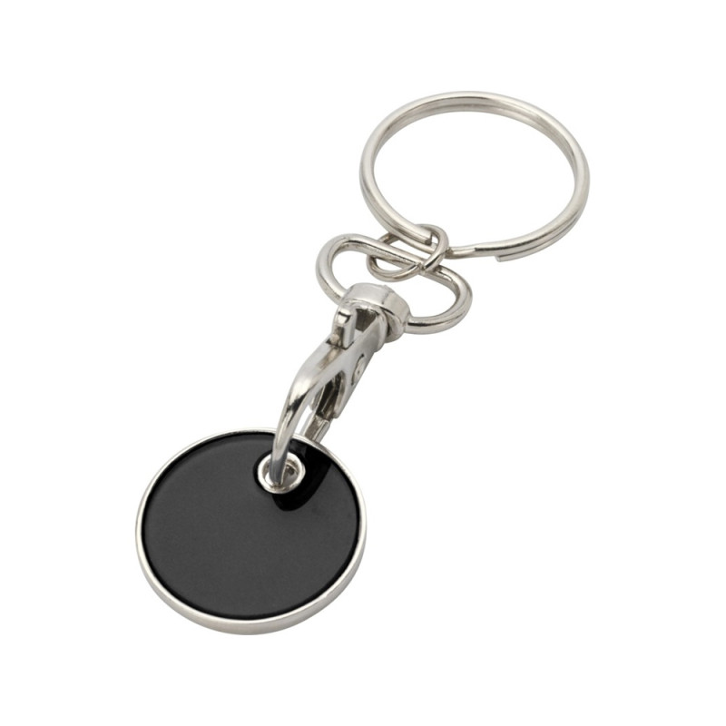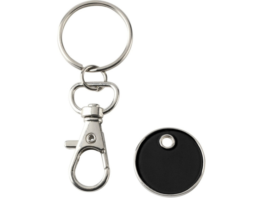 Брелок Rory с цветной монетой для тележки подходит для большинства тележек супермаркетов, позволяя открывать их без монет или жетонов. Цинковый сплав.