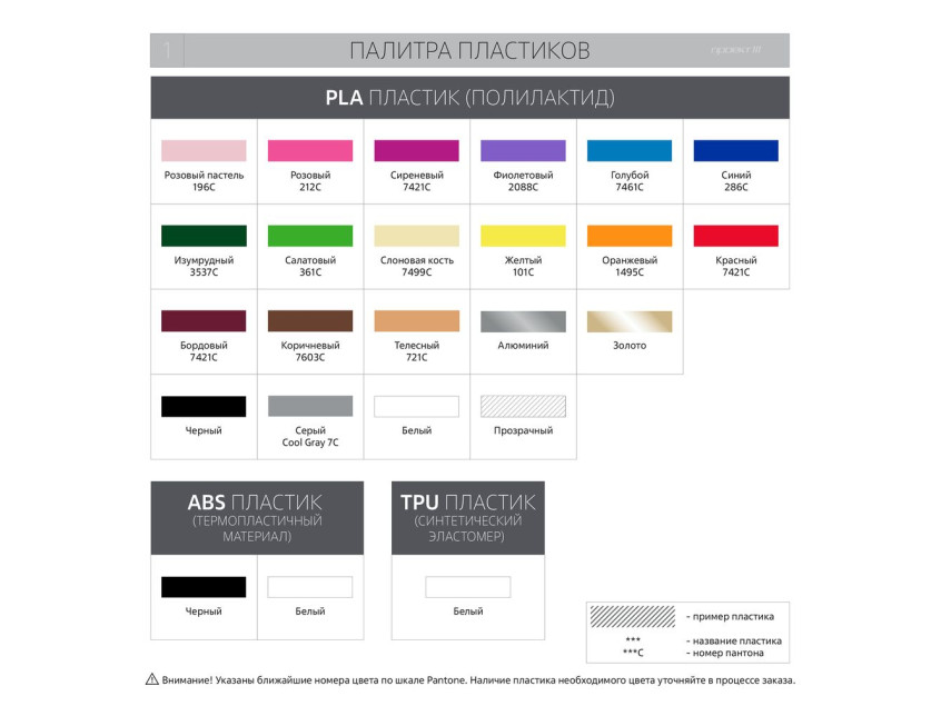 Отправляя запрос, укажите в поле «Примечание» формы заказа цвет пластика. Варианты цветов можно посмотреть в разделе «Фотографии».