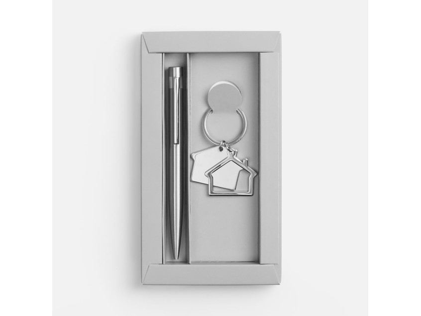 Шариковая ручка в матовом корпусе из переработанной стали не только подчеркивает заботу об экологии, но и дарит уверенность в каждом слове. Металлический брелок с подвесками в форме домика — идеальный промосувенир для строительных компаний, агентств недвижимости и ремонтных сервисов.