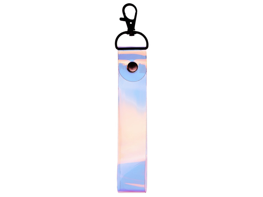 Стильная голографическая ремувка из ПВХ. Она эффектно переливается цветами от синего до золотого, притягивая взгляды. Яркий предмет, который создаст вау-эффект от вашего мерча. Можно использовать как аксессуар для ключей или сумочный обвес.