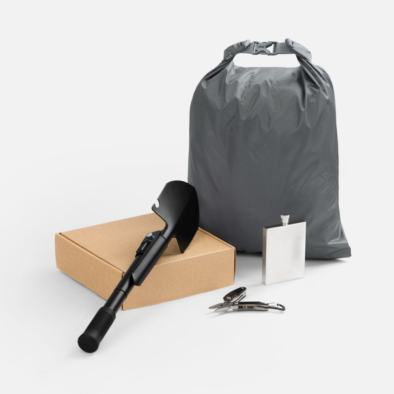 Набор Brutaliteam для тех, кто ценит свободу и не боится приключений. В комплект входят компактная многофункциональная лопата, складной мультитул, прочная фляжка и водонепроницаемый рюкзак, который надежно защитит вещи в любых условиях.